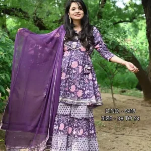 Plus Size Upto 7XL Sharara Kurta Dupatta Set Cotton Wedding Wear Kurtis Dupatta
