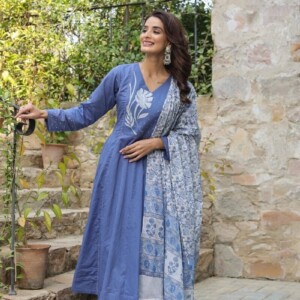 Indian Women Anarkali Kurti Pant Dupatta For Gifts