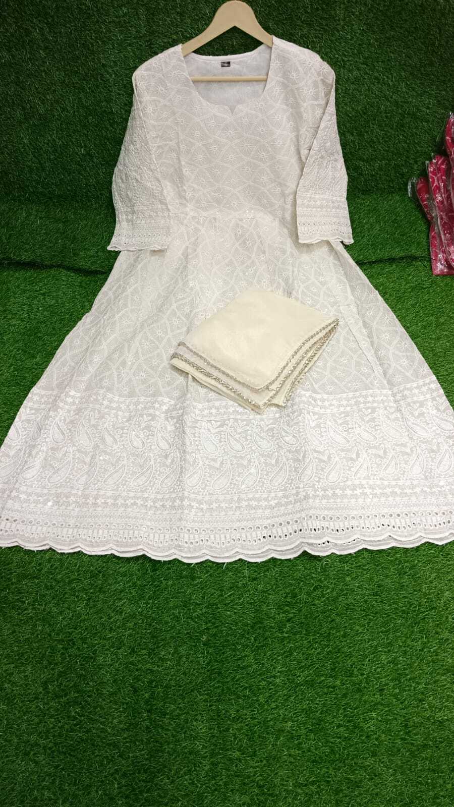 Heavy Chikankari Anarkali Kurta with Dupatta Set for Women – Pakistani Style Indian Wedding Wear | LabelCraftArt