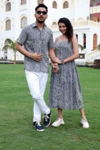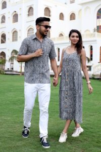 Cotton handblock print couple twinning outfit, crafted for comfort and style. A perfect readymade dress for gifting and special occasions.