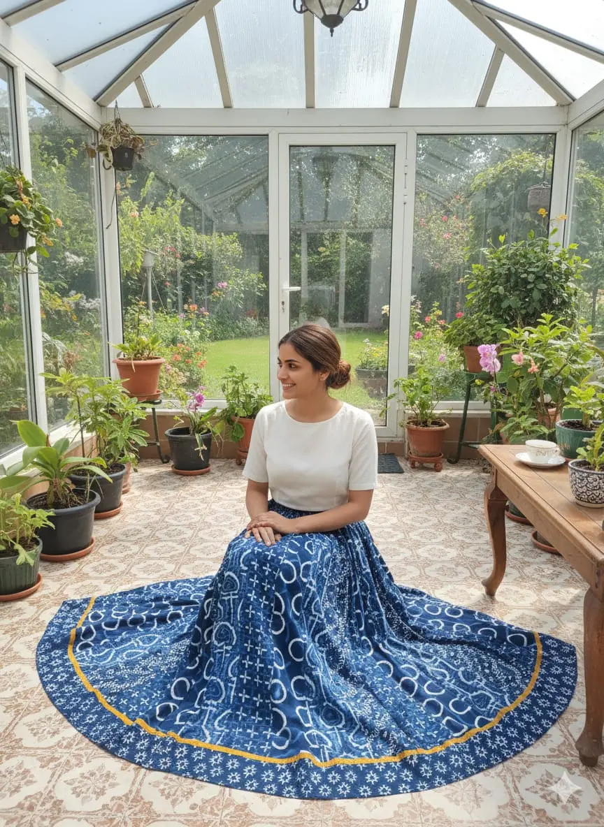 Because every print is done by hand, no two skirts are exactly alike. Slight variations in color intensity and pattern placement are natural and are considered a hallmark of genuine handcrafted products. These variations make each Bagru handblock printed cotton skirt unique, giving you a one-of-a-kind garment that reflects true artisan craftsmanship.