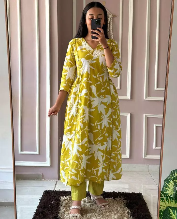 100% COTTON Women Kurtas And Kurtis Sets Straight Palazzo Kurta Set Fully Stitch