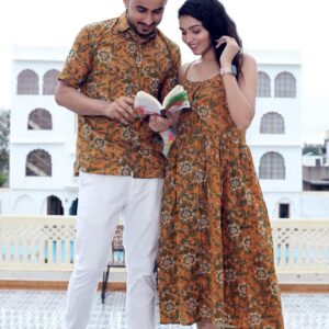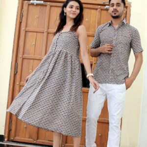 Coupel Twining Outfit In Cotton Handblock Prints, Readymade Dress For Gifting